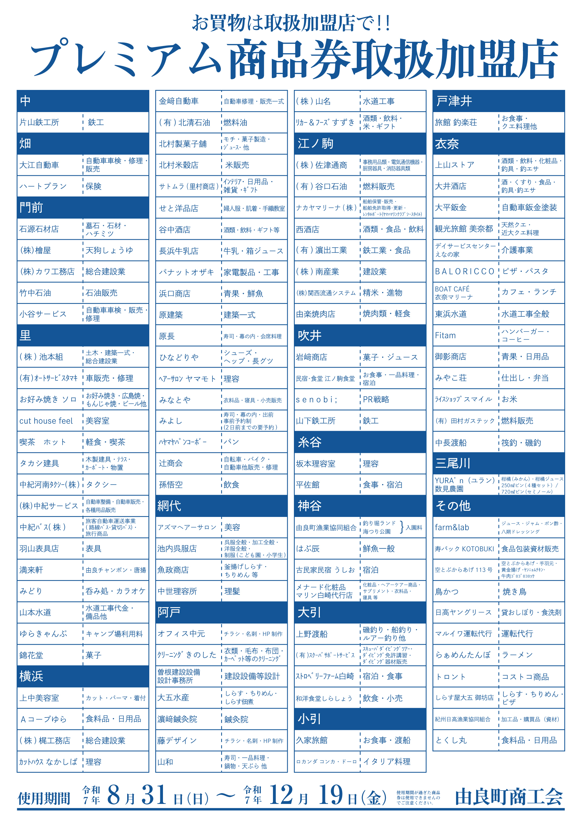 商品券取扱加盟店一覧